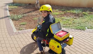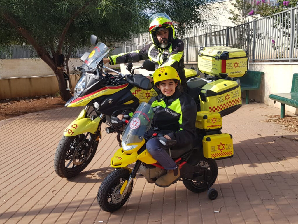 גבריאל אטדגי ממגדל העמק, רק בן 7, וכבר חולם להיות פראמדיק על אופנוע של מגן דוד אדום, כמו אביו. לכבוד החופש הגדול, פראמדיק מד"א מאור אטדגי החליט להגשים חלום לבנו הצעיר, ושיפץ את אופנוע הצעצוע שלו במשך מספר שבועות, עד שלבסוף נראה כדגם קטן, וכמעט זהה לאופנוע הכבד של מגן דוד אדום.