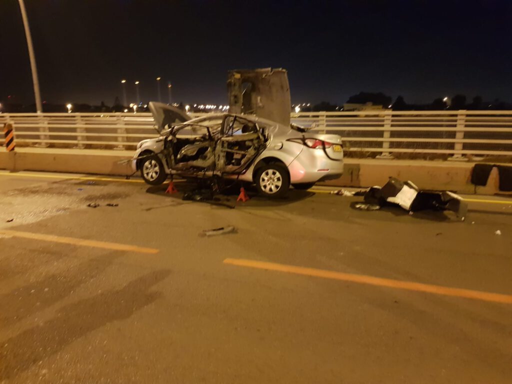 המשטרה חוקרת חשד לפיצוץ ברכב סמוך לגשר אריק שרון בחדרה