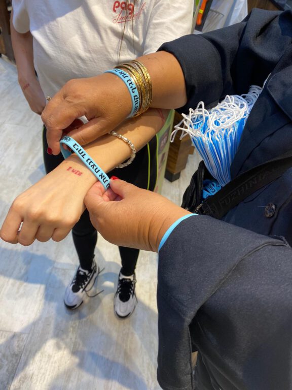 מתנדבי המשטרה והשוטרים חילקו מסכות לתושבים וצמידים לילדים הקטנים עם הסלוגן, שנכתבו הן בשפה העברית והן בשפה הערבית: