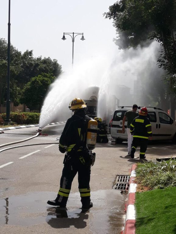 הצוותים מבצעים פעולות קירור למשאית וכן פועלים לעצירת הדליפה.