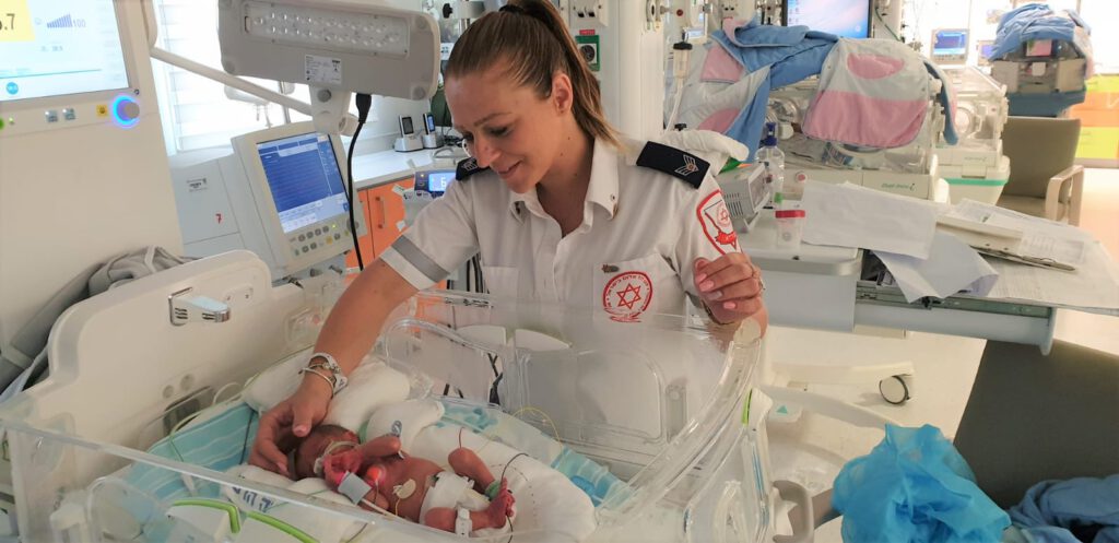 *שרה-אל (11), ביתה הבכורה של ליטה, שהייתה בבית, סיפרה:* "עבורי הלידה של אימא הייתה מרגשת אך ברגעים הראשונים בעיקר מלחיצה. קמתי להתארגן לבית הספר, ופתאום ראיתי את אימא שלי יולדת בחדר השינה בבית שלנו. זה לא משהו שדמיינתי שיכול לקרות. התקשרתי לדודה שלי, גם היא חובשת במד"א, שניסתה להרגיע אותי ואת האחים שלי. הצלחתי להירגע אחרי שראיתי את אחי הקטן והמתוק נולד". צילום: דוברות מד"א