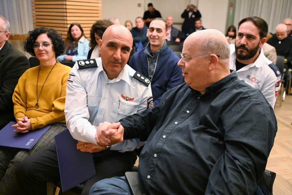 בין המשתתפים: מפקדי תחנות חיפה וזבולון של המשטרה, מנכ"ל בית החולים בני ציון, מפקדי כב"א ומד"א במרחב חיפה, פקחי העירייה, נציגי ארגון נכי צה"ל ומתנדבים שפעלו למען תושבי העיר במהלך שנת מלחמת "חרבות ברזל".