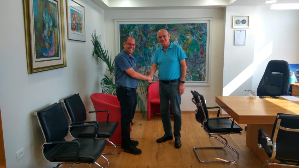חילופי מנכ"לים במרכז הרפואי בני ציון. (מימין לשמאל) המנכ"ל היוצא דר' אמנון רופא והמנכ"ל הנכנס ד'ר אוהד הוכמן