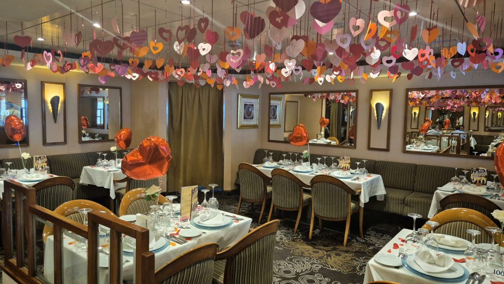 לרגל החגיגיות קושטו הברים, חדרי האוכל, אולמות הבידור והמופעים, בבלונים אדומים, ובכרזות "LOVE" (אהבה) לרגל ט"ו באב שיחול ביום שבת.