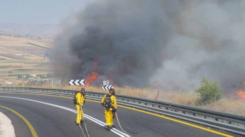 שריפת קוצים גדולה בין שרונה ליבניאל 4 צוותים בפיקוד מפקד המשמרת רף רשף איציק בן חמו הצוותים פועלים בשתי גזרות