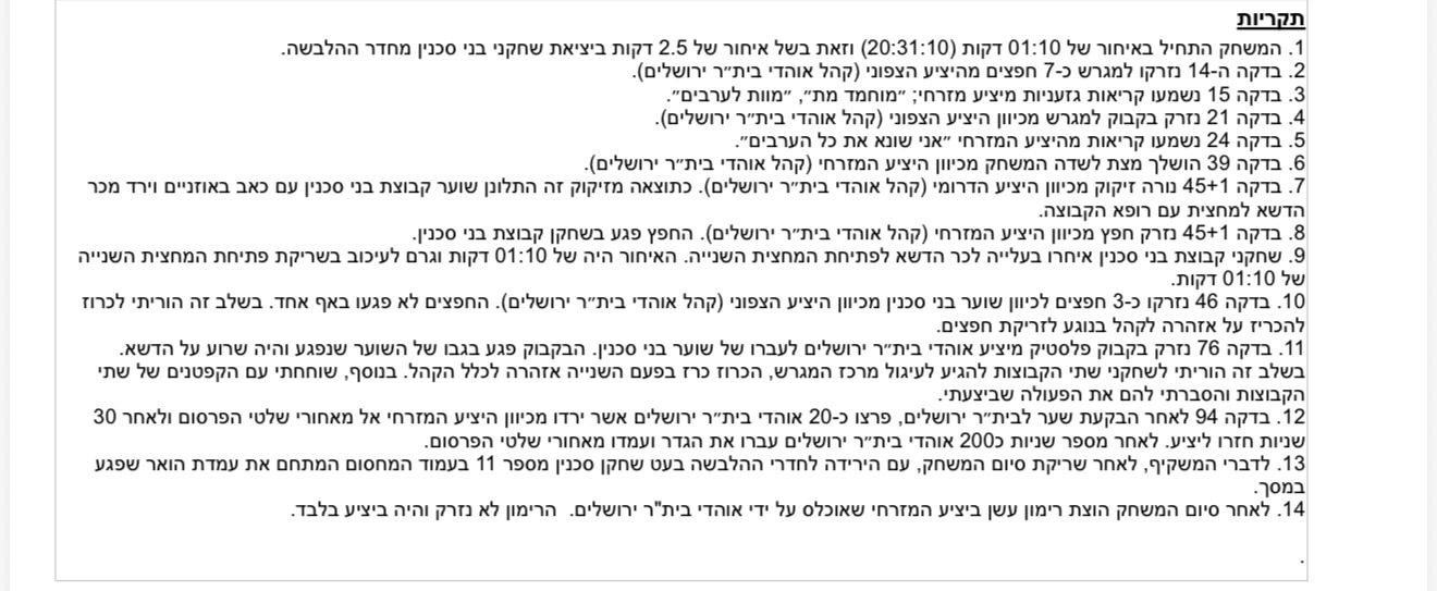 בתאריך 01/11/25 התקבל דיווח אודות קטטה שארעה במגרש הכדורגל בבענה בין קבוצות מליגה ג׳ גליל עליון, לקראת סוף משחק בעקבות