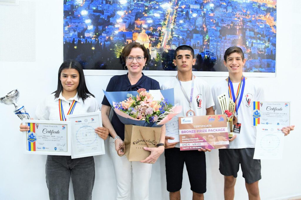 אלופי האיגרוף של מועדון ׳מכבי סליבא חיפה׳ מעין הים התארחו בלשכת רה״ע עינת קליש רותם שלושה אלופי ישראל באגרוף לנוער